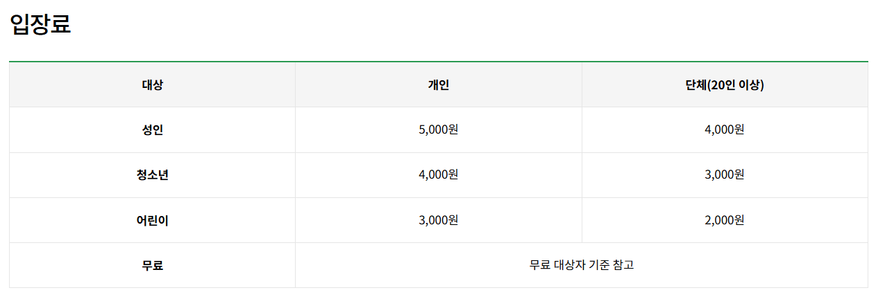 입장료는 일반 관람과 동일하게 적용되며, 일부 할인 혜택도 있습니다.