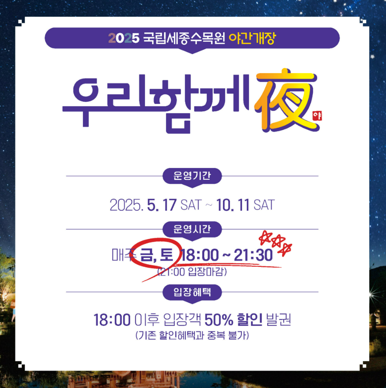 이름하여 ‘우리 함께야(夜)’ 국립세종수목원 야간개장입니다.